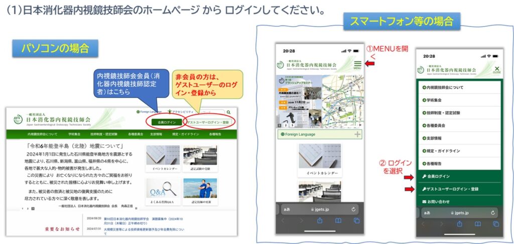 - 日本消化器内視鏡技師会非会員(消化器内視鏡技師でない方)は、事前にゲストユーザー登録をしてログインしてください。