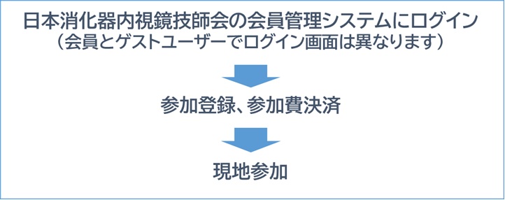 - 参加申し込みや参加費の支払いは、日本消化器内視鏡技師会会員管理システムで行います。